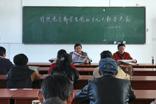 根据市人社局党组、学院党委统一部署,为掀起学习十九大报告精神的热潮,行政党支部于10月31日下午,在教学楼103教室,召开了学习党的十九大报告大会。