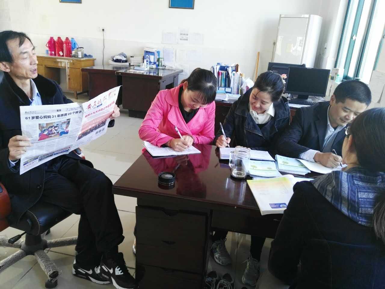 支部宣传委员谢美平同志带领大家学习了习近平总书记代表中国共产党第十八届中央委员会向大会所作的报告。大家一边认真聆听报告,领会报告精神,一边认真做笔记。大家一致认为,习近平总书记的报告描绘了决胜全面建成小康社会、夺取新时代中国特色社会主义伟大胜利的宏伟蓝图,指明党和国家事业的前进方向,是全党全国各族人民智慧结晶,是新时代坚持和发展中国特色社会主义的政治宣言和行动纲领。大家纷纷表示,要认真学习贯彻党的十九大精神,特别是习近平新时代中国特色社会主义思想,作为一名教师,要严格要求自己,时刻保持自己的先进性,谦虚谨慎,主动思考,勤奋工作,以更加饱满的热情和埋头苦干的精神,为决胜全面建成小康社会,夺取新时代中国特色社会主义伟大胜利,实现中华民族伟大复兴的中国梦做出自己应有的贡献。