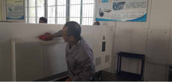 在活动过程中,每一个党员干部们积极发挥奉献精神,不怕脏、不怕累,有的喷除油剂,有的用抹布擦拭设备,齐心协力做环境卫生和设备外观整治的“践行者”,每个参加的党员都拿着工具认真地清理,虽然他们都干得汗流浃背,但却没有一个人叫累叫苦,过往的教师和学生看到他们在辛勤的劳动,都投来了赞许的目光。