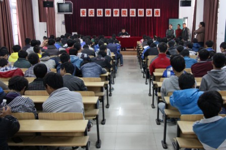 为营造良好的法制教育环境和氛围,增强学校推进法制教育的实效性,教育学生养成良好的法制观念、树立良好的法律意识,我院特邀请大龙山派出所周警官于2013年11月21日下午在教学楼一楼多媒体教室举办了法制讲座。