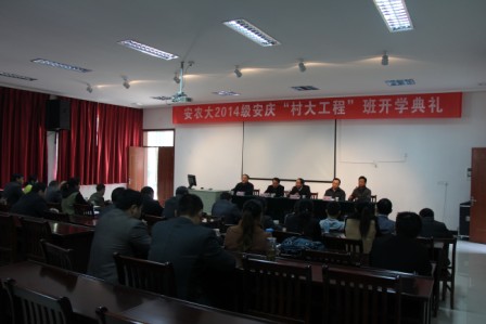 开学典礼上,王华君院长对安庆市2014级村大工程顺利开班表示祝贺,并简要介绍了安徽农业大学的基本情况,介绍了“一村一名大学生”人才培养工程教学管理模式;安庆市委组织部农组办王迎久主任就“一村一名大学生”人才培养工程做了重要讲话;我院分管负责人朱清对学员提出了学习的要求。