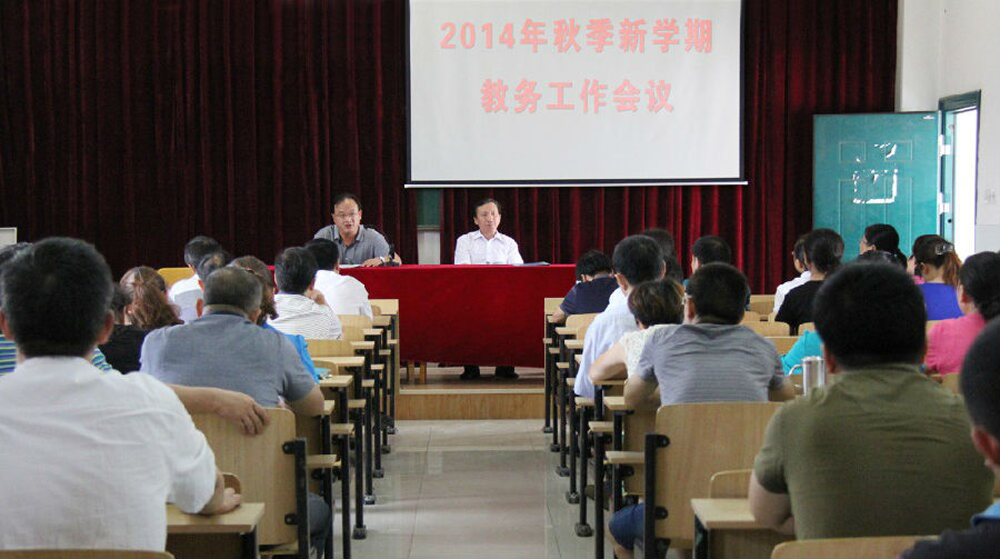 2014年8月27日下午,学校在教学楼一楼电教室召开全校授课教师大会,部署新学期教学工作,并对学校今后教学工作提出新的要求。