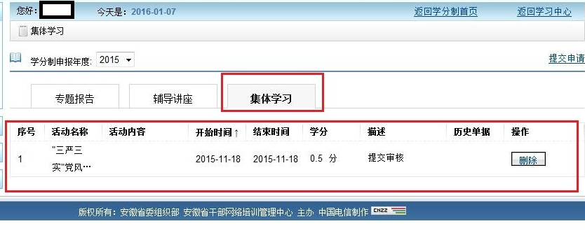 接人社局通知,我院参加安徽干部教育在线学习的同志,请务必在2016年元月12日前完成学分制申报。