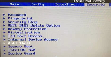 联想品牌计算机请进入BIOS“Security”菜单,查找是否有“Anti-Theft”子项,即如下图所示。