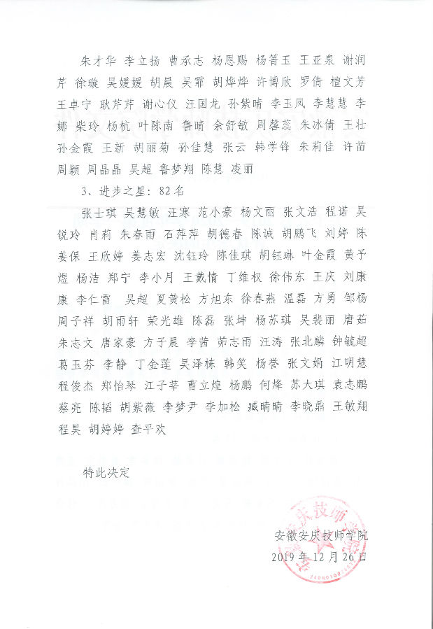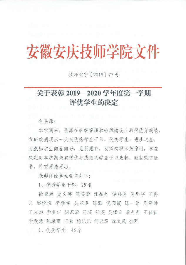关于表彰2019—2020学年度第一学期评优学生的决定