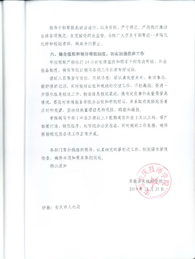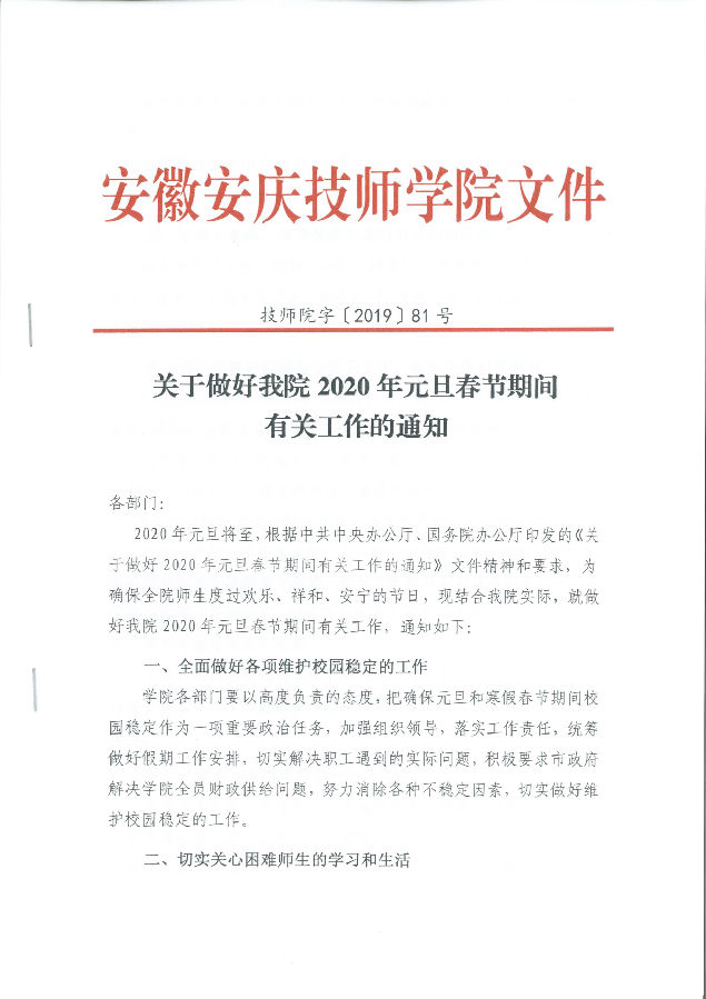 关于做好我院2020年元旦春节期间有关工作的通知