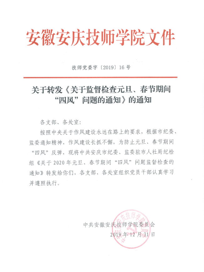 关于转发《关于监督检查元旦、春节期间“四风”问题的通知》的通知