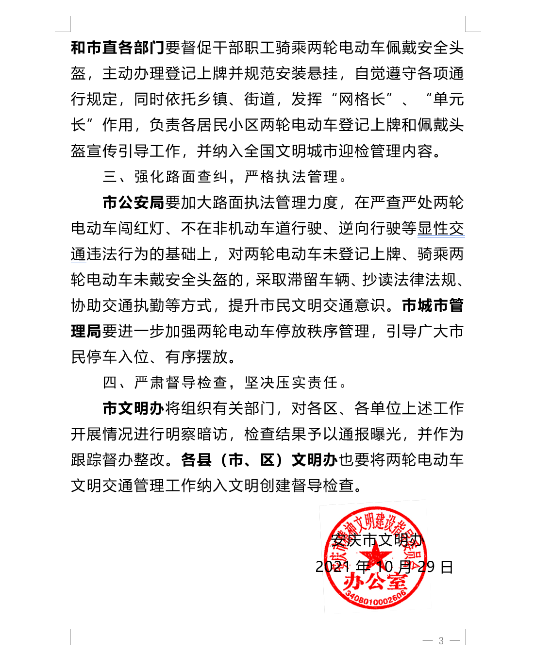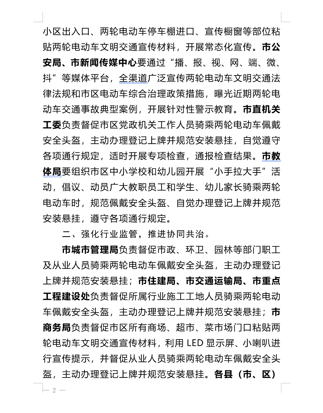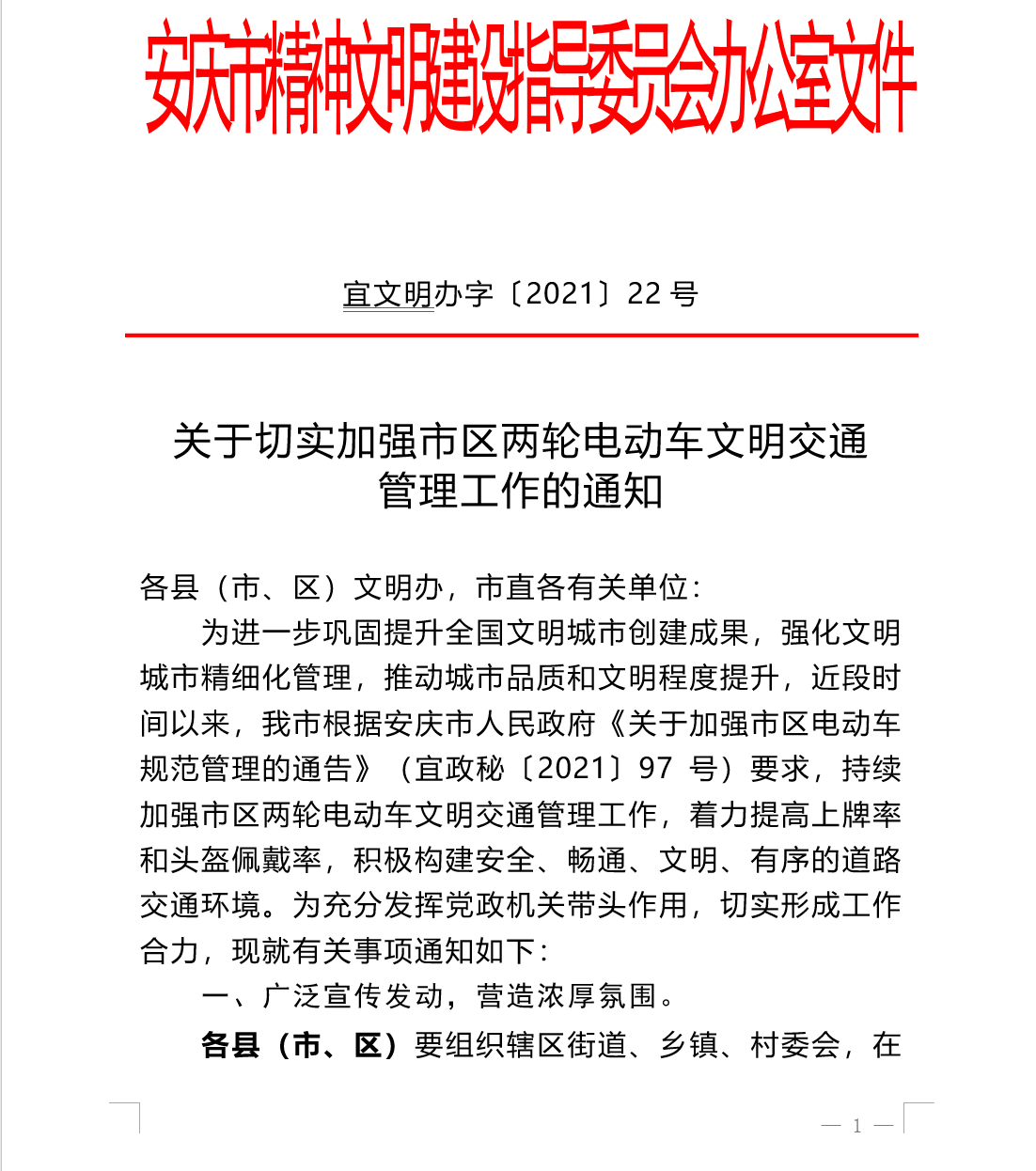 转发:关于切实加强市区两轮电动车文明交通 管理工作的通知