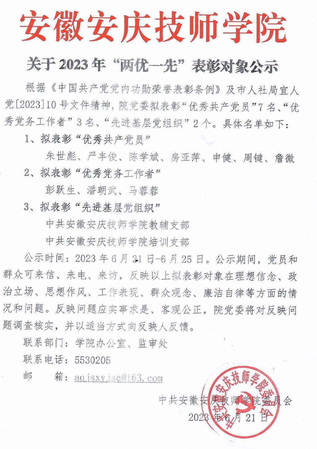 关于2023年"两优一先"表彰对象的公示