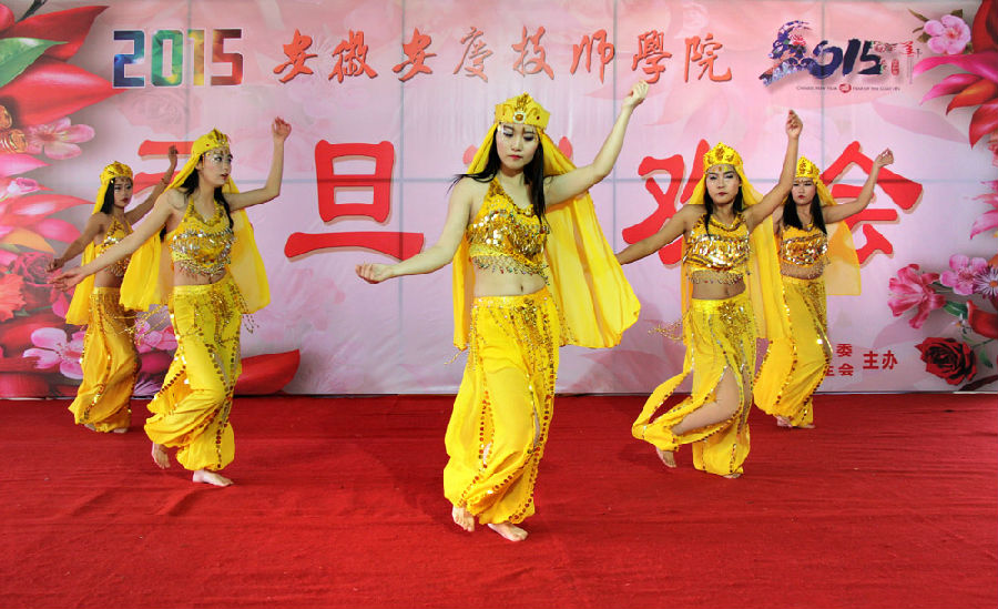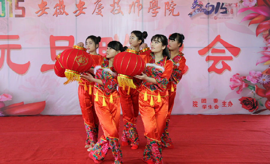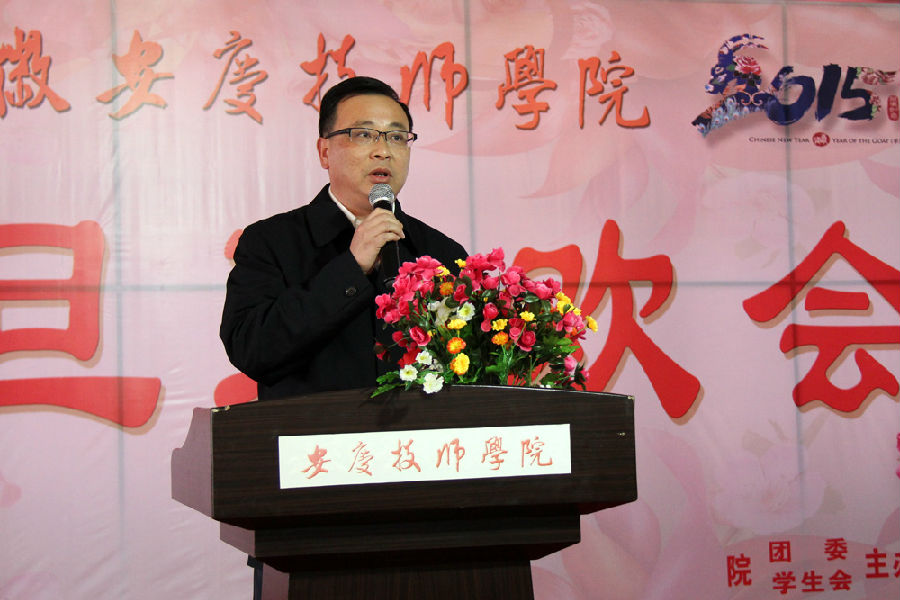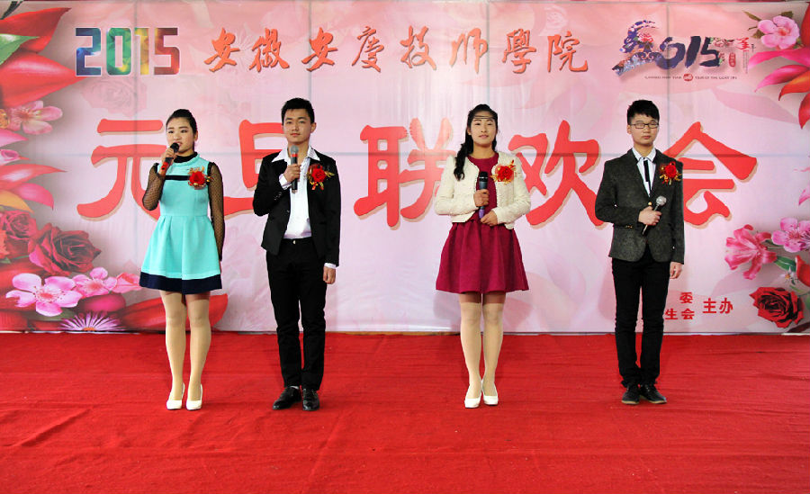 2014年12月30日下午安徽安庆技师学院2015年元旦联欢会在学院举行,学院分管领导朱清代表学院党委和行政班子向全体教职工和同学们表达了新年的祝福。联欢会在《好运来》的舞蹈中拉开帷幕,由老师组成的评委团评出《欢快地跳》、《月半小夜曲》、《战台风》分别荣获舞蹈类、歌曲类、才艺类第一名。