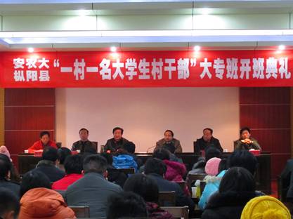 2012年12月27日,由我校组织实施的枞阳县首批“一村一名大学生”人才培养工程正式开班,枞阳县本期“村大工程”共有77名学员,参加农业技术与管理专业学习。