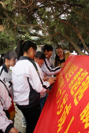 随后,受礼的学生纷纷在“燃青春、敢担当、勇超越、赢未来”的横幅上签名留念,并参观邓稼先同志的故居。本次仪式,为学生展现激情飞扬的青春风采和对师长的感恩之情提供了一个很好的平台,为学生树立勇于担当的责任意识提供了一次集体教育的契机。