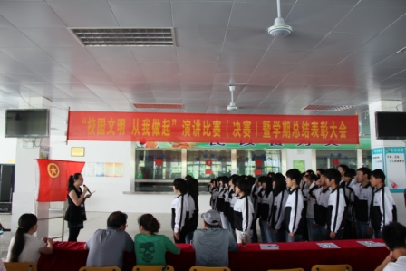 会上,团委陈明飞老师对本学期团委所开展的各项工作做了总结。学校领导徐波副校长、朱清副校长出席会议,并对本学期开展的各项文体活动获奖同学进行颁奖。