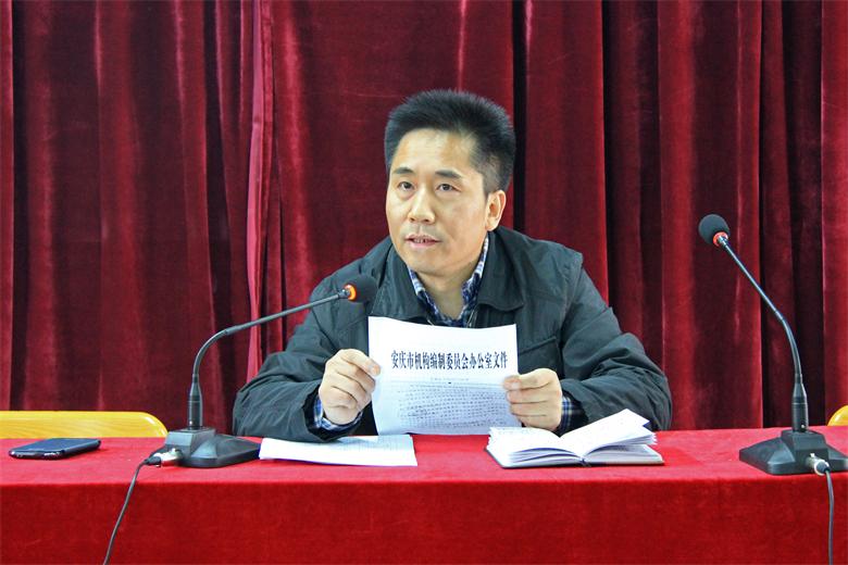 首先储新安同志传达了市编办庆编【2014】104号文件精神,并简要介绍了学院班子对这项工作的考虑和安排,接着对学院内设机构岗位设置编制方案进行了解读。