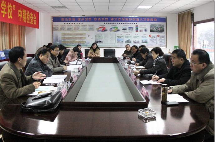 我校为“国家中等职业教育改革发展示范学校”第三批项目建设学校,建设期为2013年4月11日至2015年4月11日。2015年元月27日,省专家组一行五人莅临我校,对我校项目建设情况进行中期检查和指导,这次检查采取听汇报,看材料,看现场的方式进行。