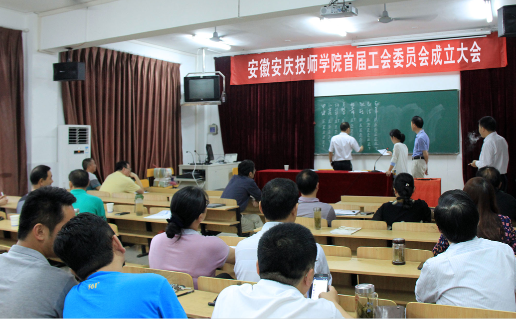 2015年5月29日下午,安庆技师学院第一届工会委员会选举大会在教学楼一楼培训教室举行。会议由储新安副院长主持,我院各系部54名工会会员代表参加了此次会议。