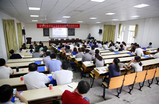 6月6日-7日,为了提高我校专业课教师的职业教育理论水平和教学技能,我校协同上海新朋程信息科技有限公司举办了专业教师培训研讨会。出席本次培训研讨会的有“国家中职教育改革发展示范校”建设专家、安徽省汽车工业学校朱国苗校长,上海市现代职业技术学校副校长、上海市特级教师詹宏副教授,安庆市纺织技工学校姚志刚校长、徐波副校长及各部门领导和专业教师等90多人。