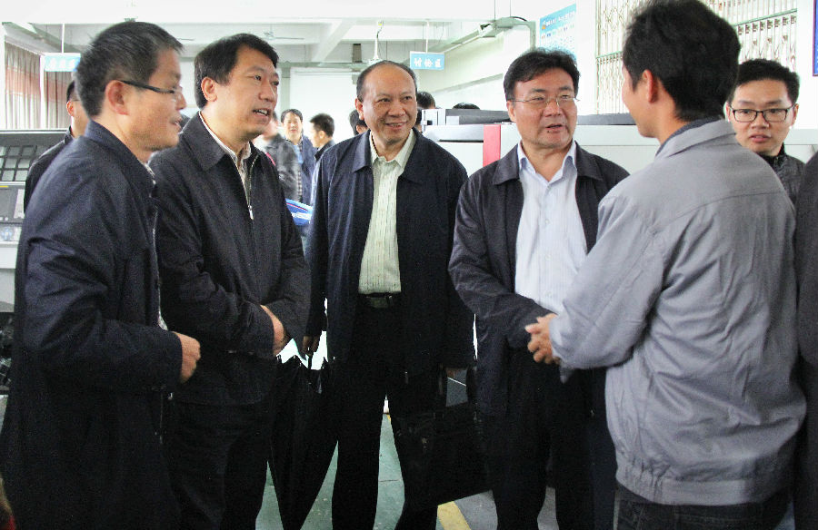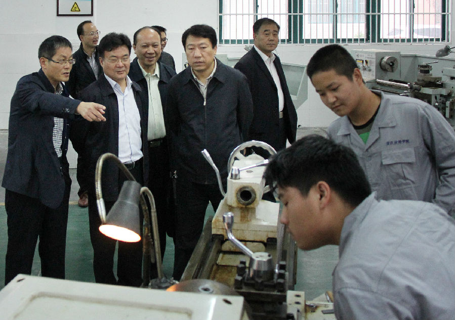 在院党委副书记、院长姚志刚及学院班子成员的陪同下,市领导一行视察了我院的监控室、教学楼、实习工厂、实训中心等。在学院实习工厂、机械加工实训中心、数控加工实训中心等处,市领导一行驻足观看学生实训教学现场,详细了解设备性能和利用情况,不时地与现场的师生交流,鼓励学生热爱本专业、学好真本领,成为社会急需的高技能人才;同时,对我院高标准的教学设施、精良的实训设备、科学的教学管理予以称赞。
