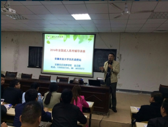 10月28日下午六时,市交通技校阶梯教室里灯火通明,学员爆棚。安农大安庆函授站免费为全市报考的300余名“村大工程”考生举办的考前辅导正如期进行,尽管时值深秋,细雨绵绵,但教室里考生们个个全神贯注,认真聆听老师们的解惑!