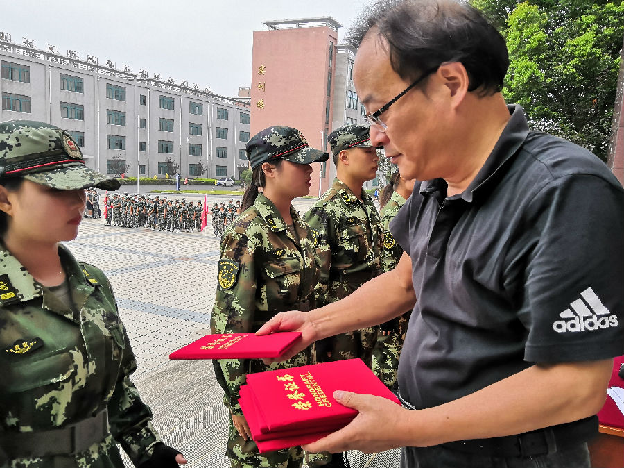 安徽安庆技师学院2019级新生军训自8月16日开训,9月5日落下帷幕。多日来,操场上铿锵的口令、无数次不厌其烦的动作示范、被灸热的阳光晒黑的面庞、浸透了汗水的衣衫、教官们飒爽的英姿、严谨的作风、严明的纪律、吃苦耐劳的精神、过硬的军事素质,将永远定格在技师学院全体师生的记忆中。