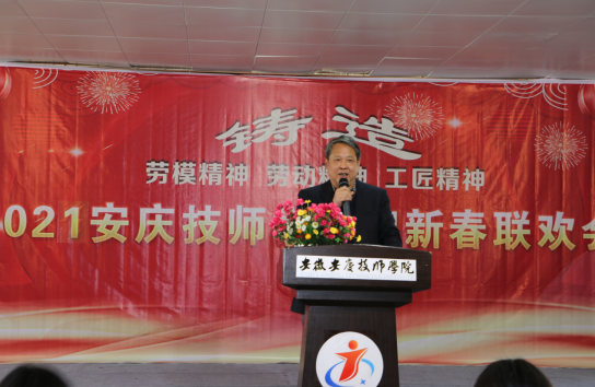 2020年12月31日下午,安庆技师学院举办了一场以铸造劳模精神、劳动精神、工匠精神为主题的元旦联欢会。李克让院长发表了热情洋溢的新年祝词,并向获得2020国家中等职业院校国家奖学金的曹承志、朱春雨两位同学现场颁发了每人陆仟元的国家奖学金。副院长王长根、储新安、徐波、纪委书记朱清出席了联欢会。