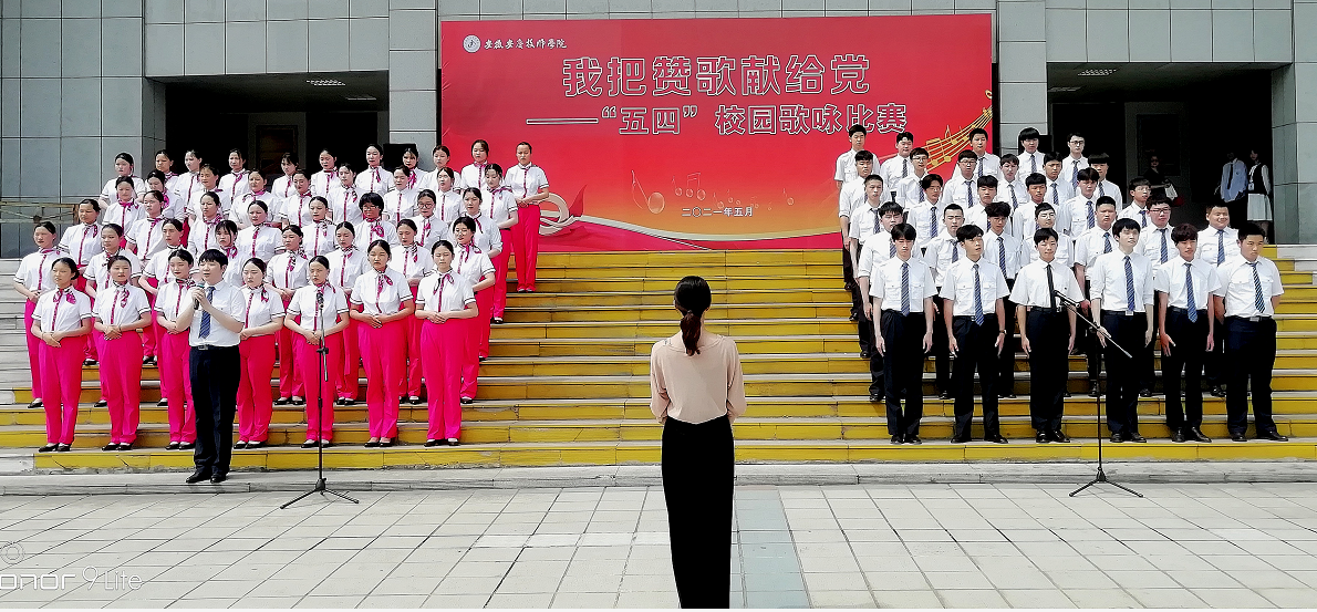 为庆祝建党100周年,5月7日下午,学院“我把赞歌献给党‘五四’校园歌咏比赛”在教学楼前广场隆重举行。学院领导班子及全院师生参加活动。