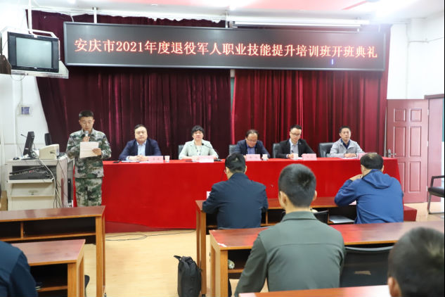 2021年10月13日上午,我院在教学楼阶梯教室举行安庆市2021年度退役军人职业技能提升培训班开班典礼。此次培训旨在为全市退役军人提供精准高效的职业技能培训,适应地方工作需要,更好融入社会发展。共有38名退役军人共同参加了本期培训班。