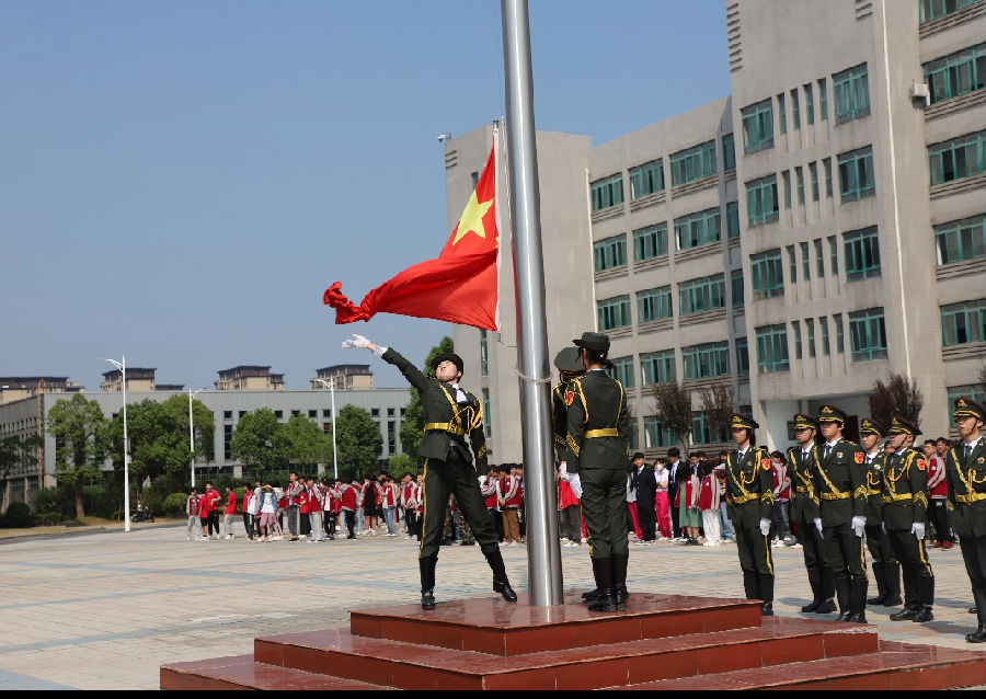在庄严的国歌奏唱中,同学们满怀热忱的注视,五星红旗缓缓升起,迎风飘扬。
