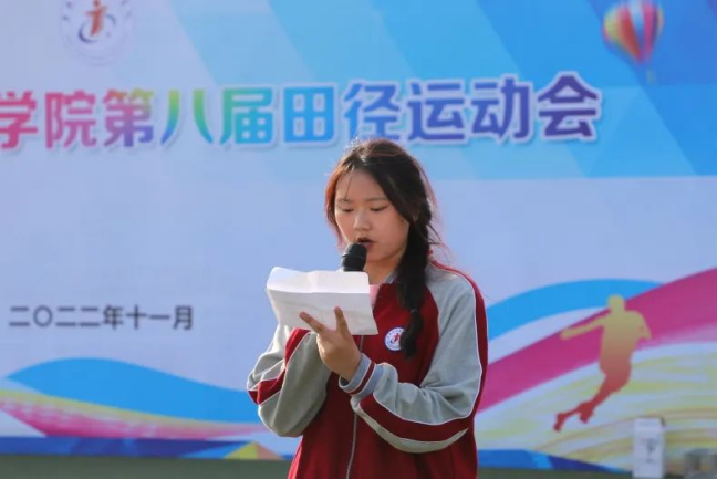 裁判员代表孙洪玺老师代表全体裁判员宣誓。运动员代表高雯同学代表全体运动员宣誓。最后,李克让院长宣布安徽安庆技师学院第八届田径运动会开幕!