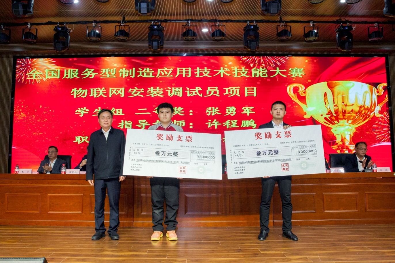 会上,市委组织部副部长、市人社局党组书记、局长聂立新为在国家一类技能比赛全国服务制造应用技术技能大赛中获奖的师生颁发市级奖励。