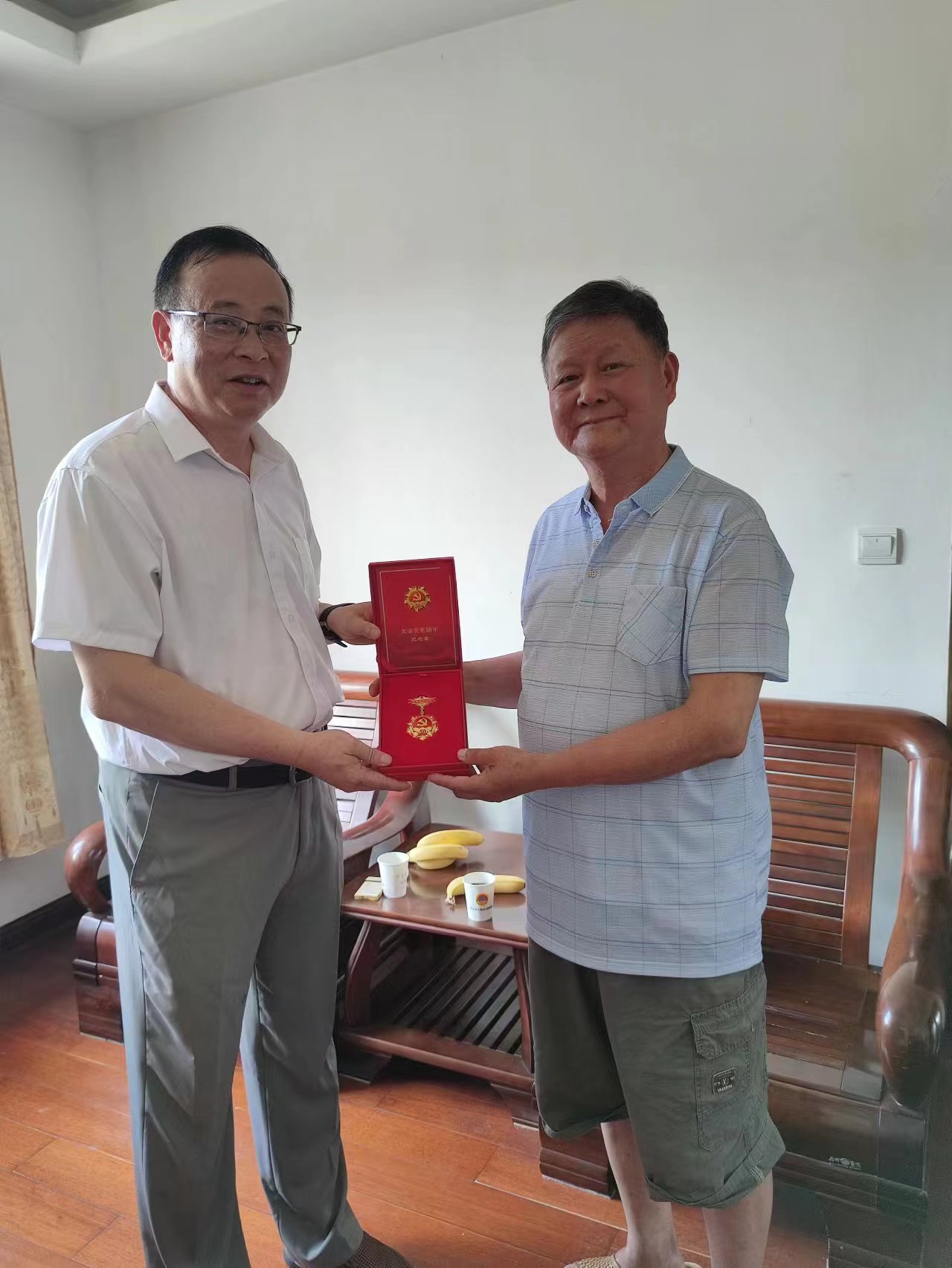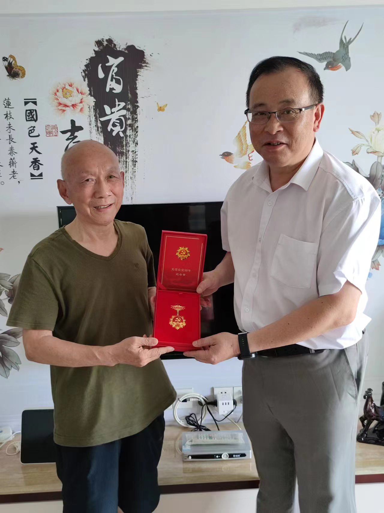 五十年党龄,五十载光荣。6月28日上午,在中国共产党成立102周年来临之际,院党委委员、纪委书记朱清,院监审处处长彭跃生代表学院党委来到退休老党员胡孝友、马寿宏家中,送去节日的祝福和诚挚的问候,并颁发了“光荣在党50年”纪念章。