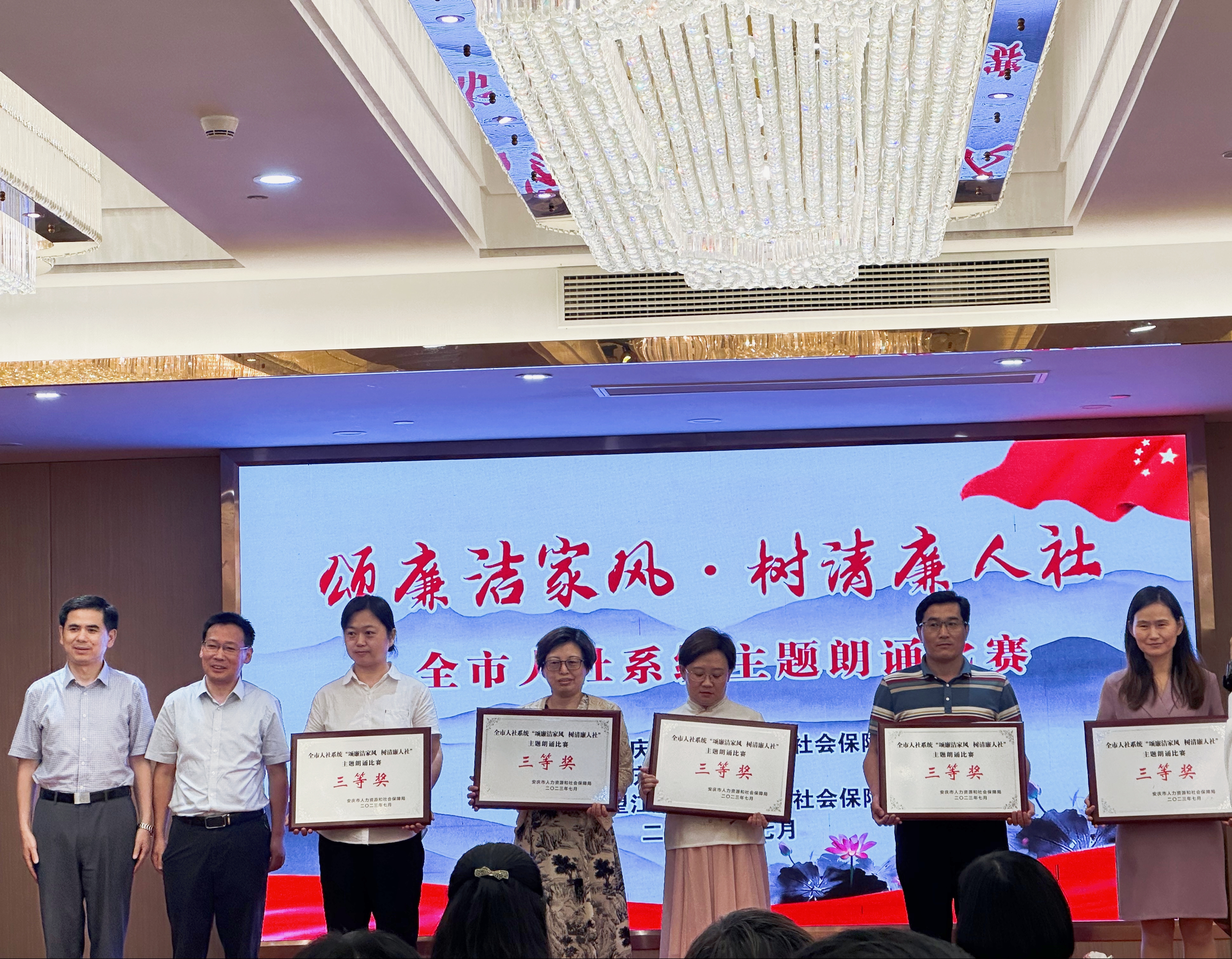 下午,大家齐一堂聆听由市人社局、市妇联主办、望江县人社局承办的“颂清廉家风、树清廉人社”全市人社系统主题朗诵比赛。现场气氛热烈,选手们结合自身业务工作,从歌颂“小家”到“大家”,从歌颂安庆历史文化名人到身边的小人小事,一行行家风家训,一个个廉洁故事,高潮迭起,赢得了观众们的深深共鸣和掌声。经过激烈角逐,现场打分,评出一二三等奖和优秀奖,我院朗诵作品《扬校之风气,传家之精神》荣获得三等奖。