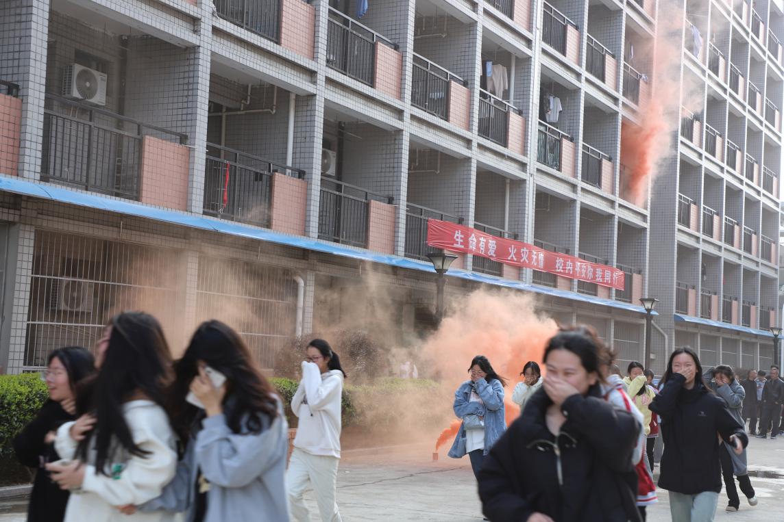 下午三点四十分,在火警警报拉响以后,全体住宿同学在值班老师和教官的指挥下,迅速疏散,按照既定的路线有序撤离,在撤离过程中,同学们手捂口鼻,弯腰小步前行,并注意不推挤,迅速撤离至学校操场,最后由教官点名,在整个过程中,同学们都能够积极参与、听从指挥,现场紧张有序。