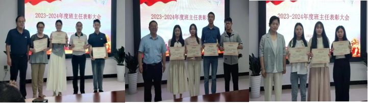 会上,学工处张敬平处长宣读了2023-2024学年度学院优秀班主任的表彰文件,以表彰他们在过去一年的班主任工作中取得优异成绩。优秀班主任是: