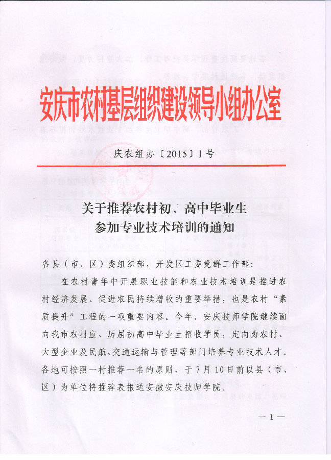 市农组办关于推荐农村初、高中毕业生参加专业技术培训的通知